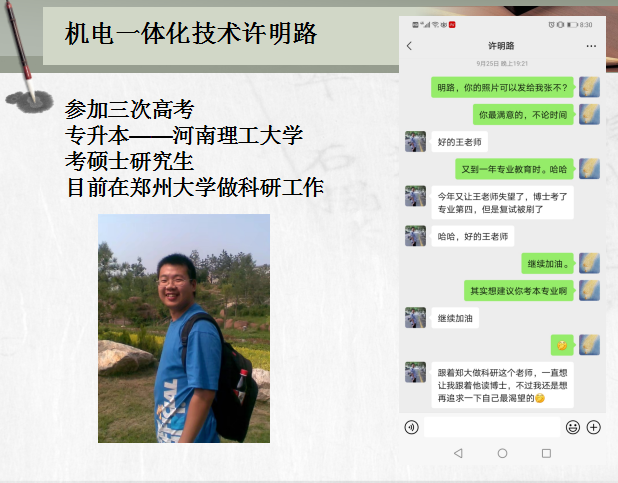 会上各位教师首先对大家表示了欢迎,随后王凤娟老师对专业的发展历程和积淀进行了介绍,然后从机电一体化技术构成、工作 场景、教学方法、团队力量、实训资源、课余拓展、学历提升、优秀毕业生介绍等多个方面对专业进行介绍,让员工对所学专业有一个总体的认知,对专业的学习和自己的职业发展建立兴趣和信心。在最后一个环节,大家积极提问,教师们及时对提出的问题进行解答,提问环节结束后,专业教育在专任教师对同学们的殷切希望和殷殷祝福中结束。
